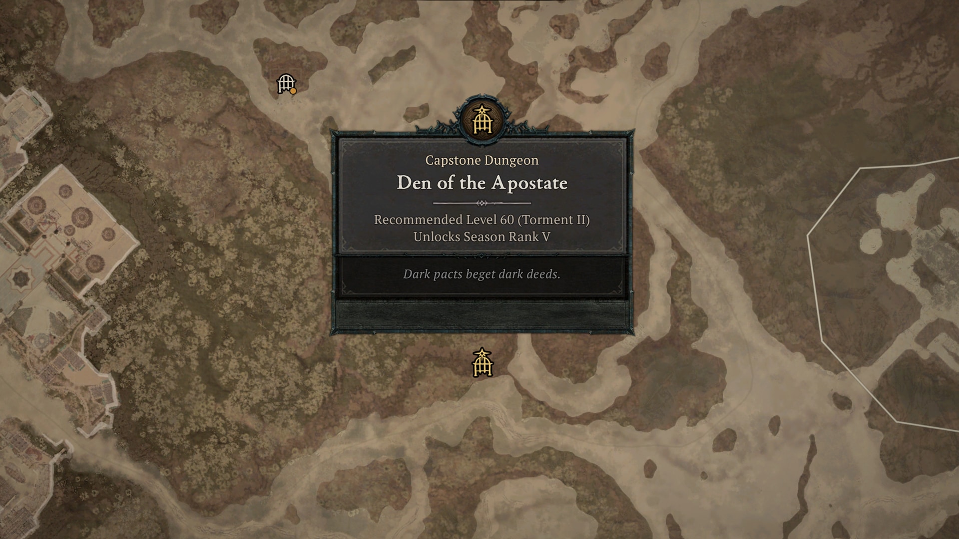 顶石地下城已整合进全新的系统,旨在挑战你的角色在整个旅程中不断获得力量时,穿越众多难度层级的进度。请注意,尽管顶石地下城标明了建议等级,但它们的难度不会根据你的当前等级而变化。