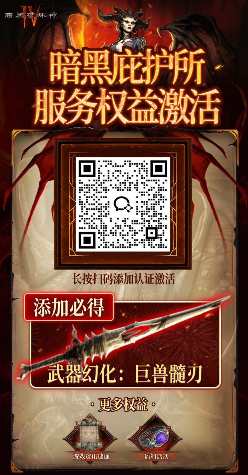 添加官方企微,即可免费领取「巨兽髓刃」绝版外观,保卫庇护之地!